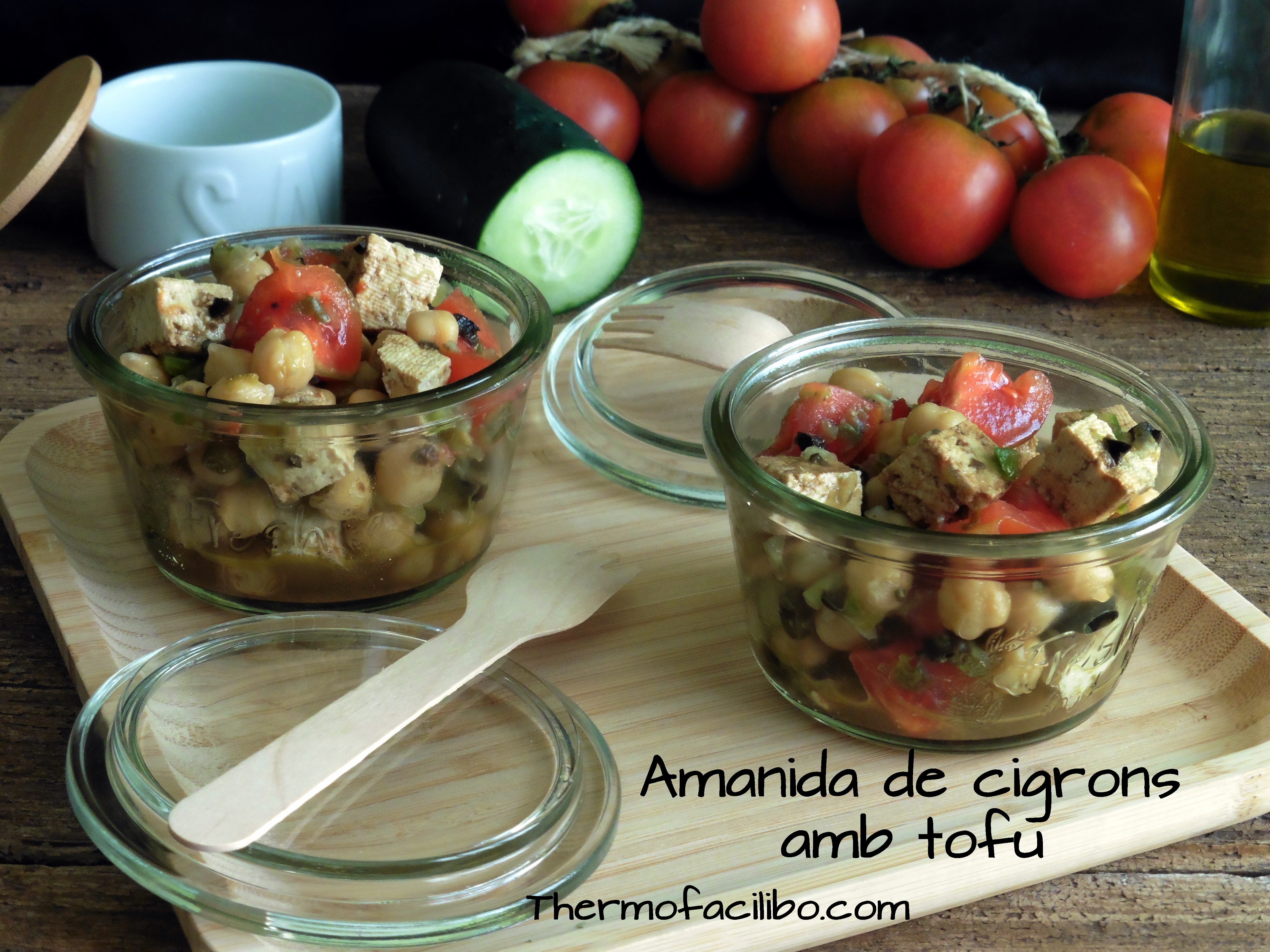 Avui us proposo una amanida de cigrons amb tofu, tomàquet, cogombre, pebrot…