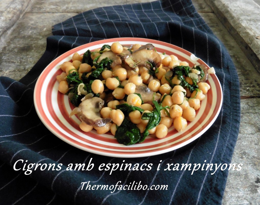 Avui un plat senzillísim i sense thermomix, només cal tenir cigrons cuits i en un moment tindrem un primer plat solucionat. Us explico;