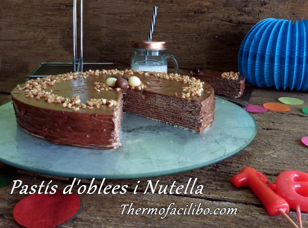 Avui estem de celebració, és l’aniversari d’en Marc, el meu fill petit. Així que malgrat ser dilluns, avui toca pastís. Bufarem les espelmes els de casa i serà el diumenge vinent quan ens reunirem amb la resta de la família, per celebrar-ho tots junts. Per tant, he optat per un pastís senzill, el cap de setmana ja en faré algun de més elaborat. L’escollit ha sigut el pastís d’oblees i Nutella, també conegut com a pastís Huesitos, ja que recorda moltíssim el gust i la textura cruixent de les famoses xocolatines.