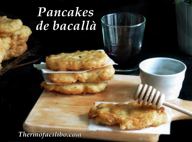 Si per Pasqua la tradició mana menjar bacallà, bunyols, torradetes de Santa Teresa…….Doncs vinga! Avui una de bacallà, que sobretot als meus fills, els encanta. Són uns pancakes (Tortitas) de bacallà, fets amb farina de cigrons, ceba, julivert…. Els he fet per sopar i els he acompanyats amb un rajolí de mel i una amanida. Han desaparegut amb un tres i no res!!
