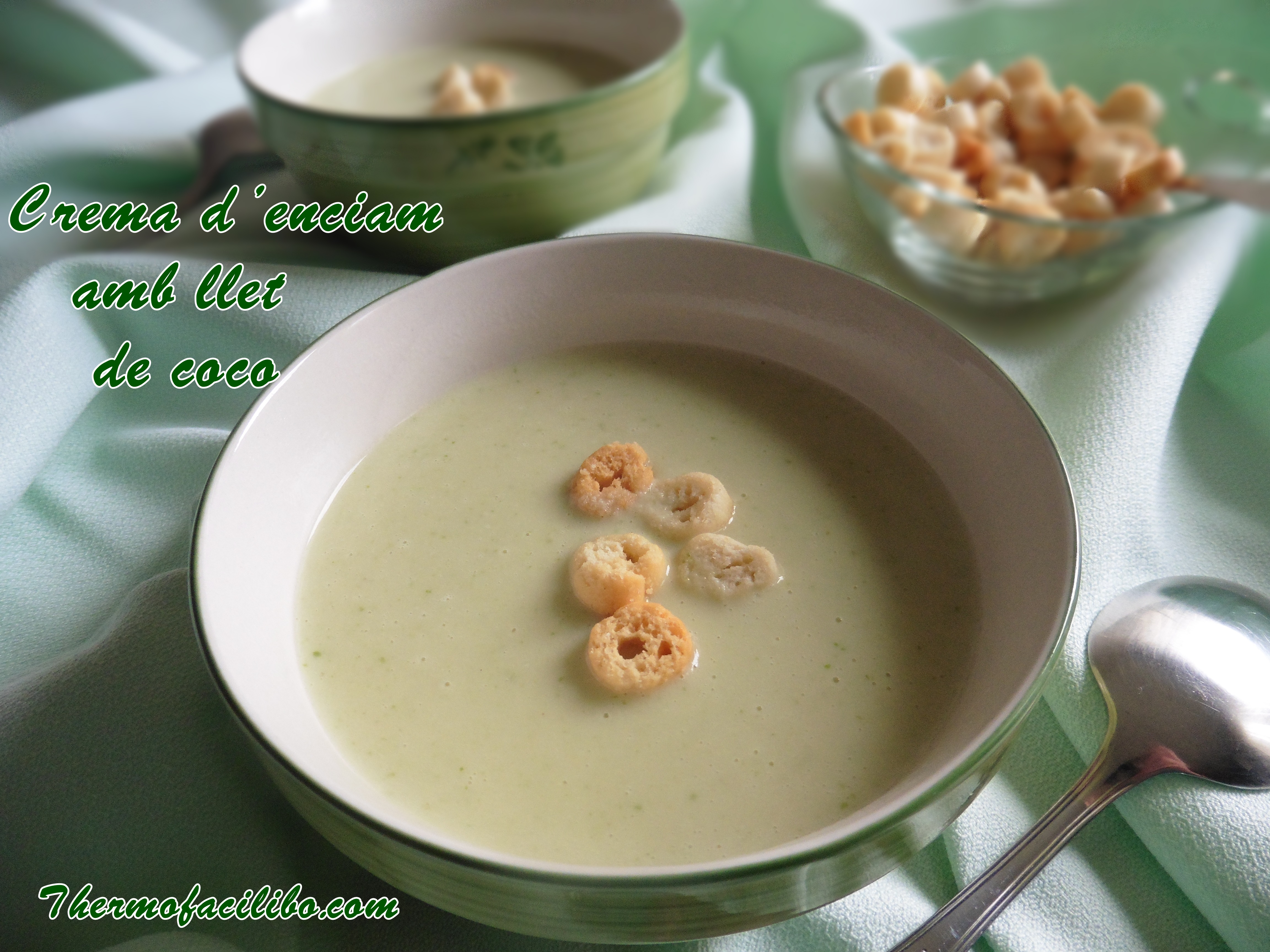 La recepta d’avui ens serveix d’aprofitament de les fulles més verdes i dures de l’enciam (aquelles que no posem a les amanides) Amb elles, junt una mica de patata i porro farem una crema. Li donarem un toc de cremositat, aconseguint una textura molt agradable i un gust boníssim en afegir-li la llet de coco.