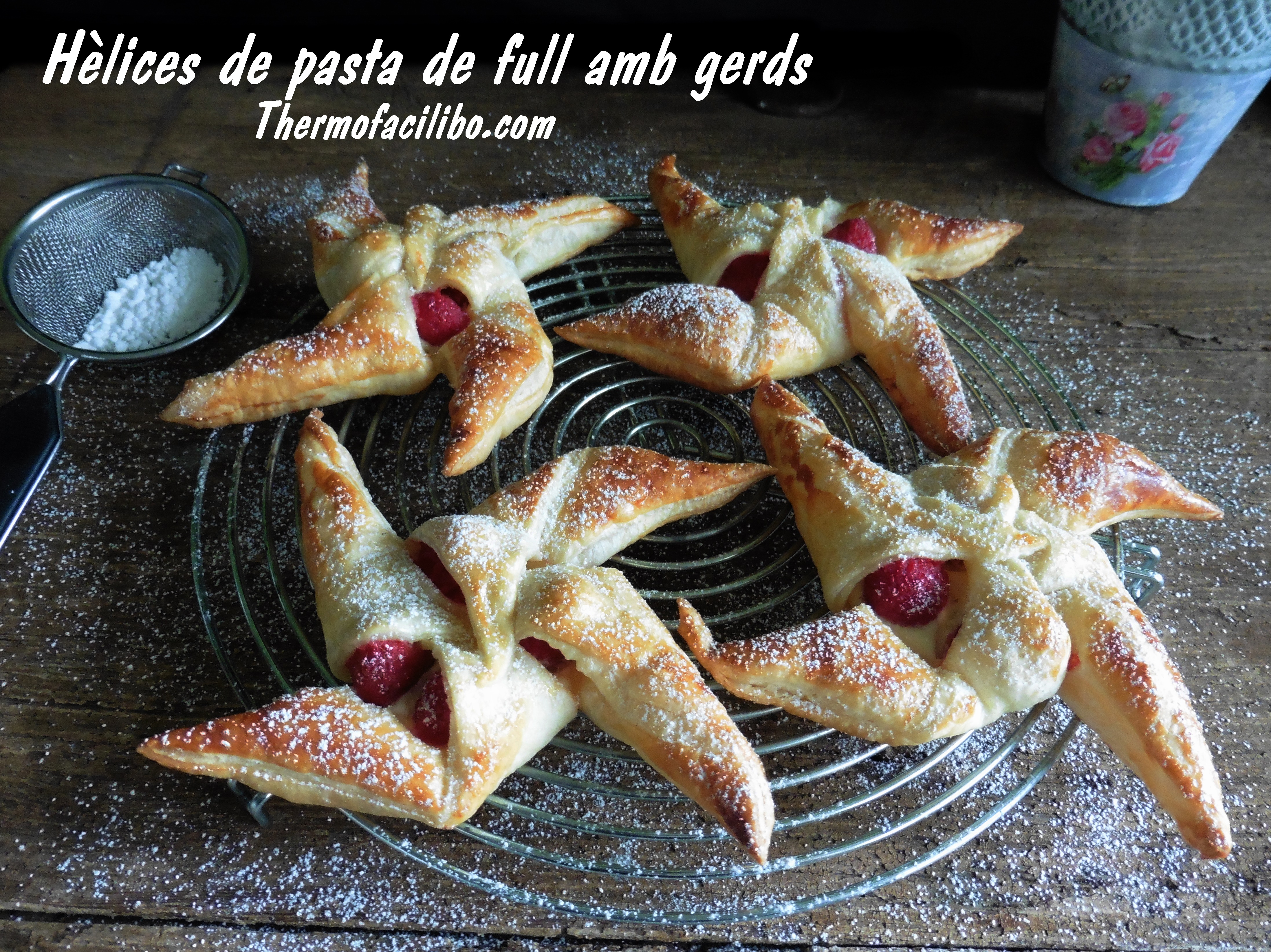 Avui he arribat d’hora a casa i he aprofitat per fer aquestes hèlices de pasta de full per berenar. Són fàcils i molt «resultones», a casa agraden molt.