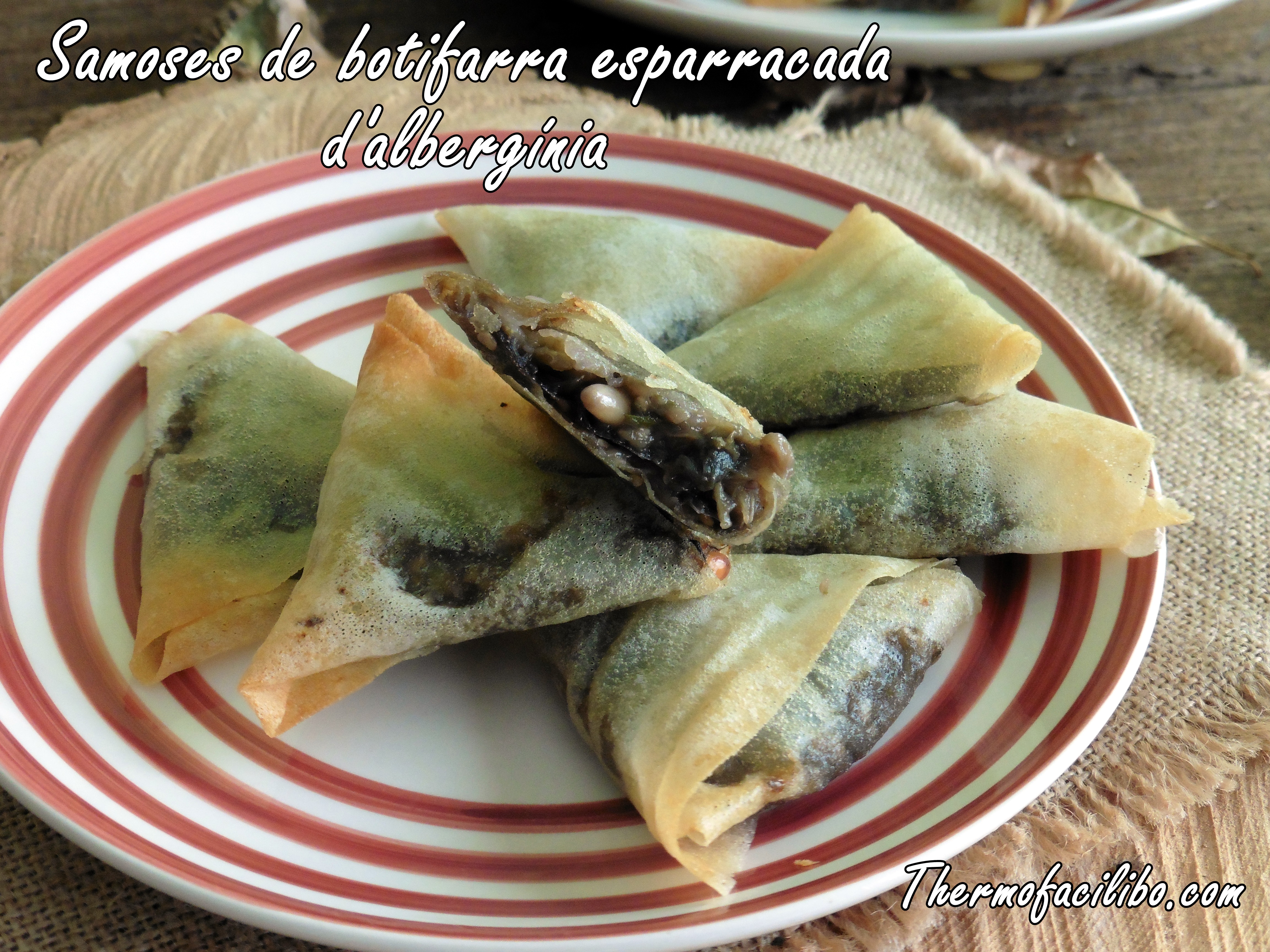 Són com uns canelons fets de pasta brick i farcits de verdures aromatitzades amb curri. Tenen una textura exterior cruixent i un interior sucós i molt gustós, gràcies al farcit de verdures. A casa, són un èxit assegurat, cada vegada que els preparo, desapareixen en un tres i no res.