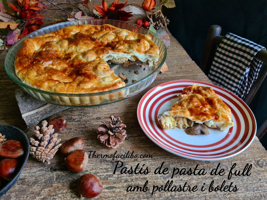 Pastís de pasta de full amb pollastre i bolets