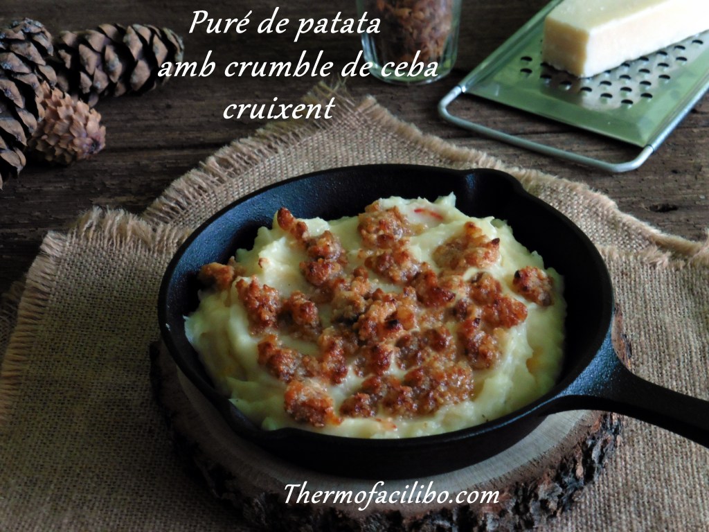 Un bàsic com és el puré de patates, si l’acompanyem de trossets de xoriço ibèric i el gratinem amb un crumble de ceba cruixent, passa a una altra dimensió. Aquest va ser el nostre sopar d’ahir…. Quina cosa tan senzilla, ràpida i bona!!!!